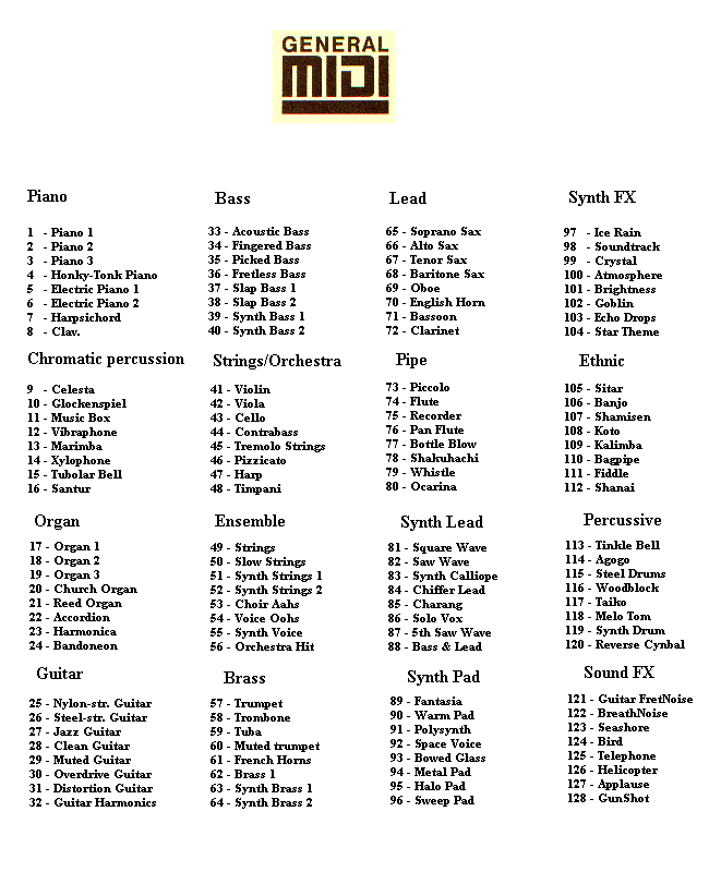 voci dello standard GM1 (+ percussioni di GM2).