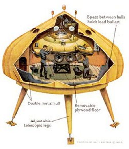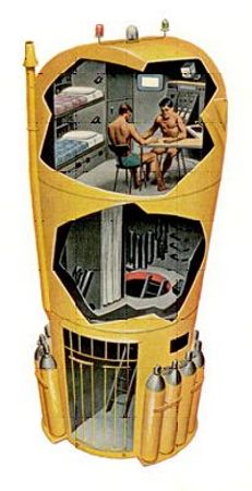 Conshelf Three - agosto 1964 - Una sfera abitabile fissata su una intelaiatura ad assicurare galleggiabilità e la sistemazione